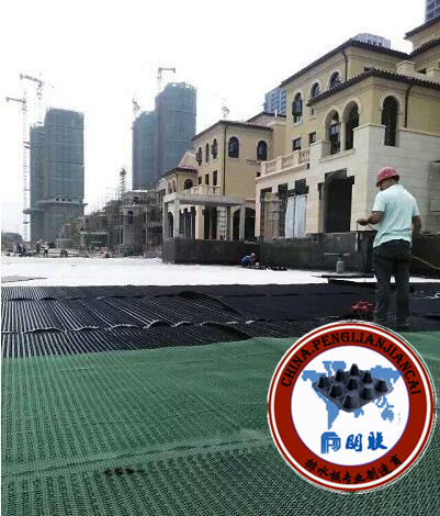 4、隔振效果優(yōu)異。因?yàn)镠DPE凹凸型塑料排水板形成的架空層,頂板的震動(dòng)噪音能夠降低30分貝。