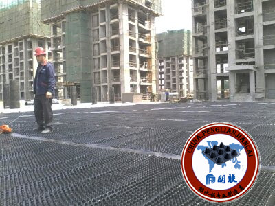(1)朋聯(lián)排水板自然展開、疏松地鋪設(shè)于規(guī)劃好的位置。